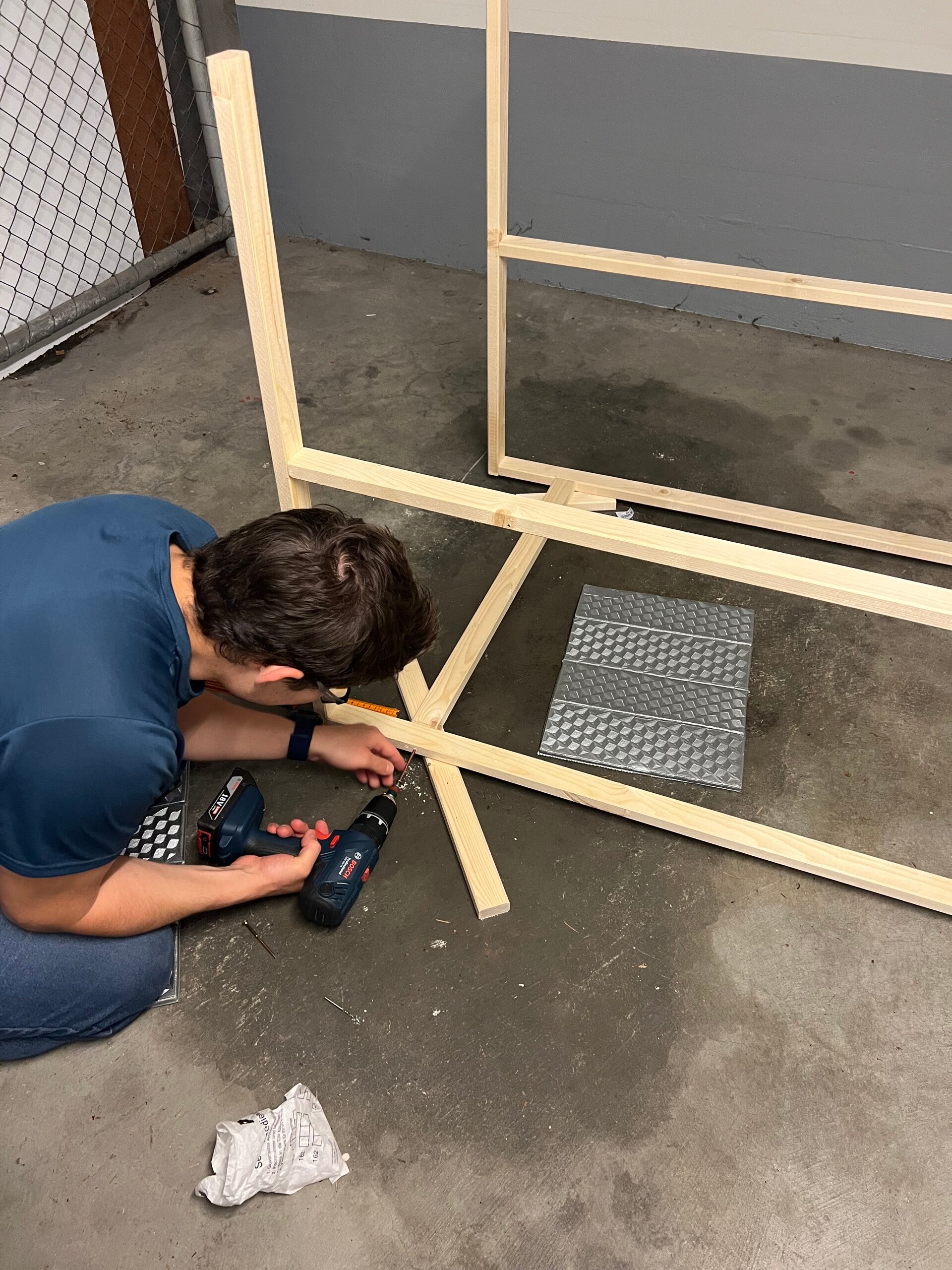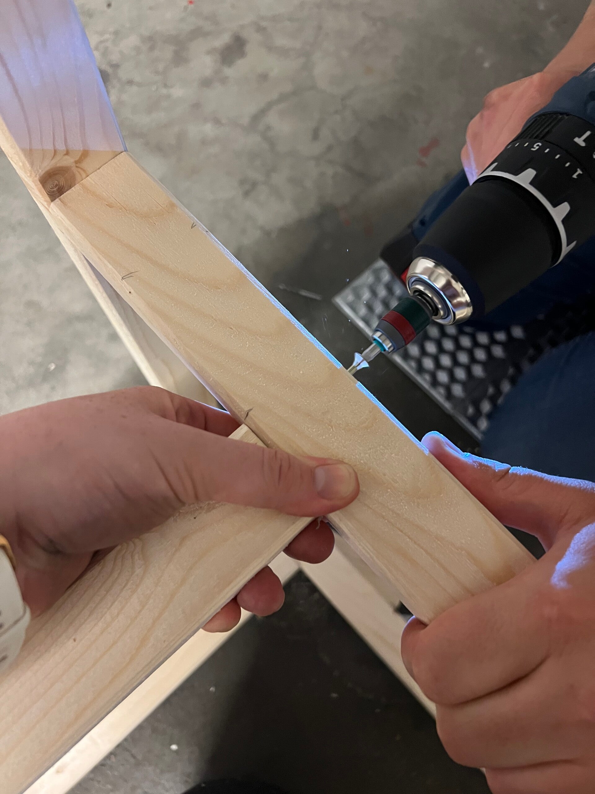 Wir sägten die Bretter auf die benötigten Längen zurecht und bohrten die Löcher vor, damit die Schrauben besser greifen konnten. Zunächst montierten wir die Bretter für die Länge und Höhe der Ablage. Anschließend befestigten wir die Querleisten für die Breite. Ein Tipp: Wenn ihr selbst eine Kajakablage baut, achtet darauf, die Schrauben so zu wählen, dass sie sich nicht gegenseitig im Weg stehen. Zum Schluss montierten wir die Rollen – und fertig war unsere selbstgebaute Kajakablage! Wir sind richtig stolz auf unser DIY-Projekt, und die Kajaks passen perfekt. Ein echter Erfolg à la Marke Eigenbau!